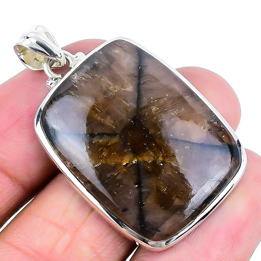 Natural Chiastolite Sister Mothers day Engagement Boho Pendant 925 Solid Silver