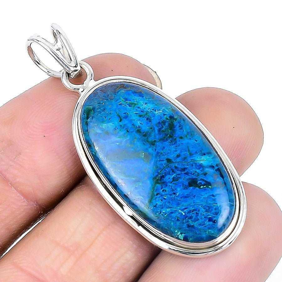 Natural Chrysocolla 925 Sterling Silver Sister Art Deco Throat Chakra Pendant