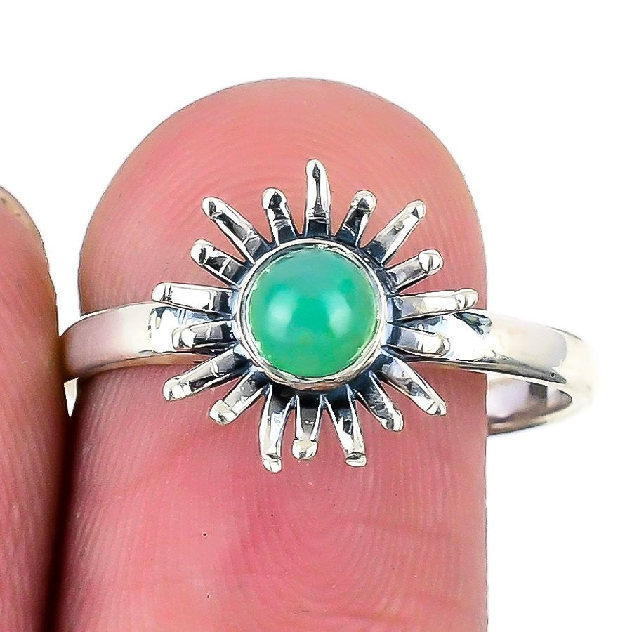 Natural Chrysoprase Statement Heart Chakra Mother Ring 925 Solid Silver US 10
