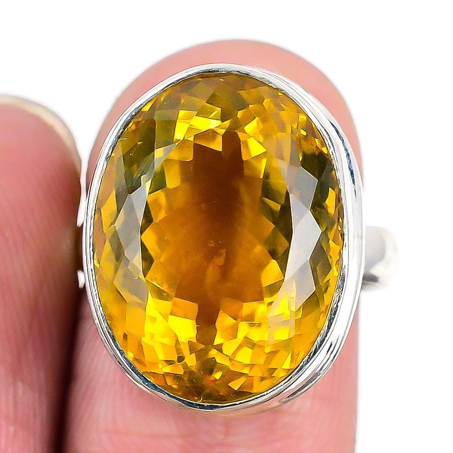 Natural Citrine 925 Solid Silver Daughter Bezel November New Statement Ring US 7