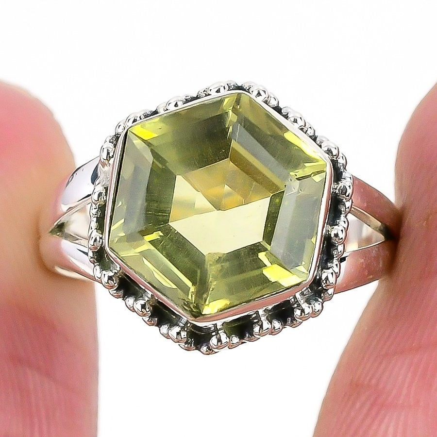 Natural Citrine 925 Solid Silver Wife Statement Handcrafted Ring Jewelry US 6.5