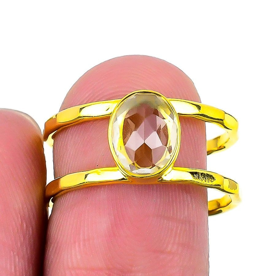 Natural Citrine 925 Sterling Silver Gold Vermeil Wedding Statement Ring Jewelry