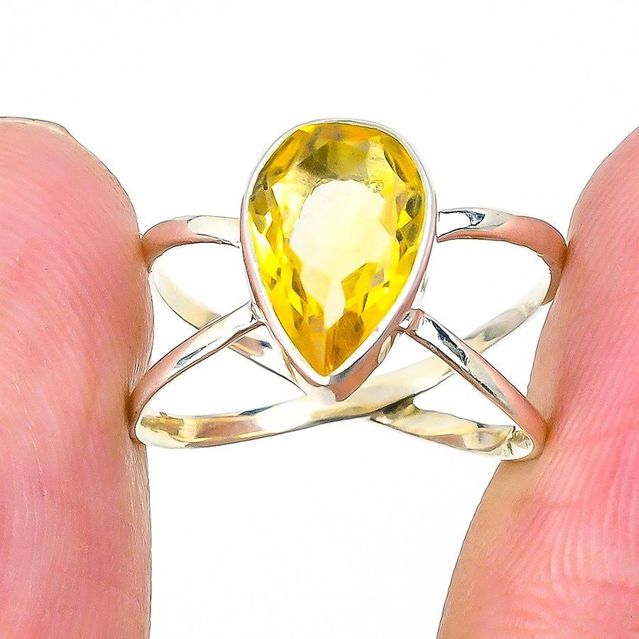 Natural Citrine Anniversary Birthday Cluster Wedding Ring Size 7 Solid Silver