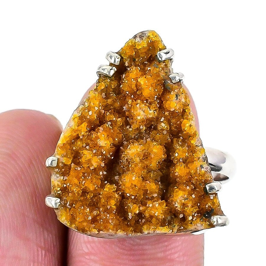 Natural Citrine Drusy Birthday Statement Trendy Ring Jewelry Size 10 925 Silver