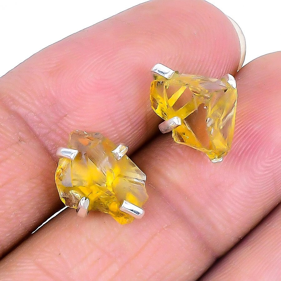 Natural Citrine Druzy 925 Silver Boho Wife Wedding Stud Post Earrings Jewelry