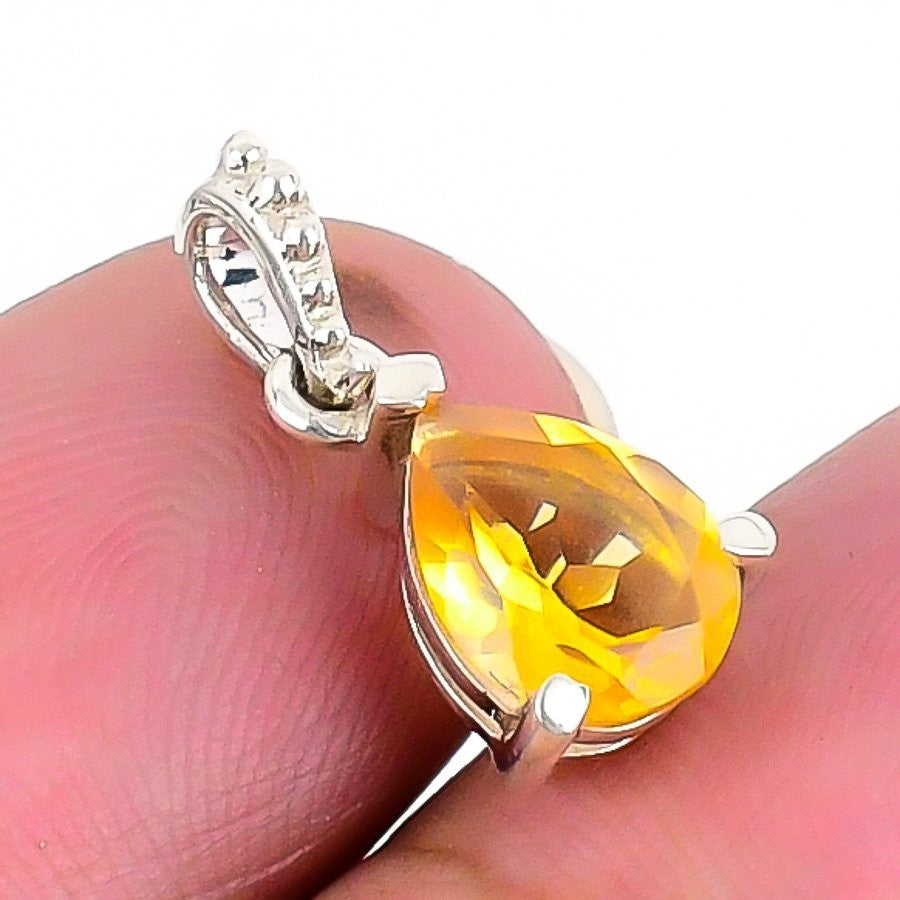 Natural Citrine Faceted Daughters Day Unique Pendant Jewelry 925 Sterling Silver