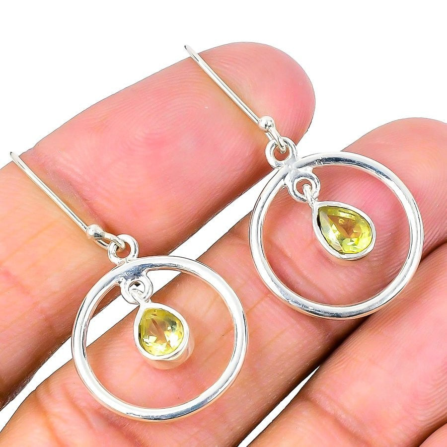 Natural Citrine Hook Dangle Sister Anniversary Earrings Solid Sterling Silver