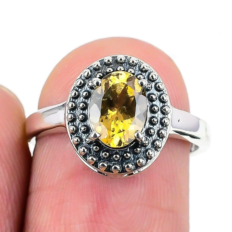 Natural Citrine Solid Sterling Silver November Artisan New Statement Ring Size 7
