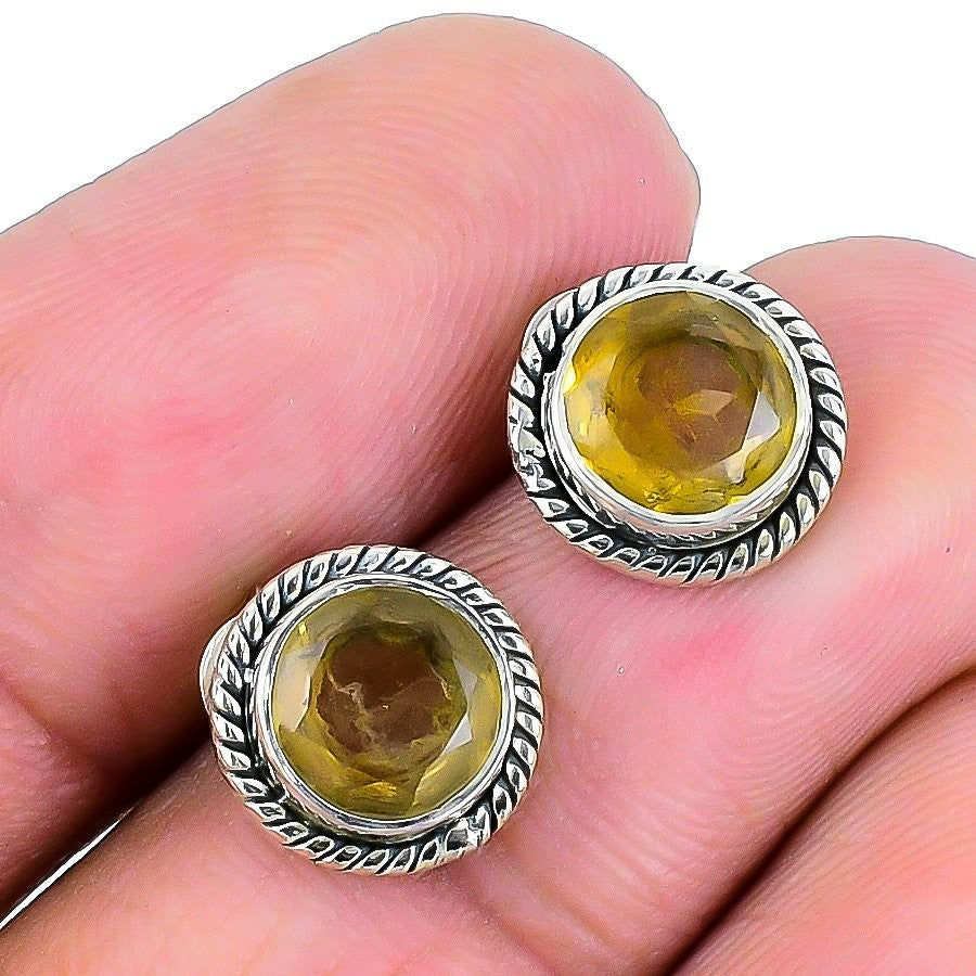 Elegant Natural Citrine Solid Sterling Silver Stud Post in 9