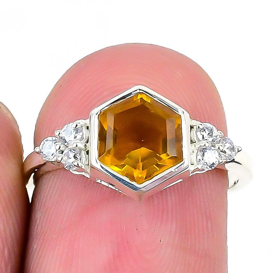 Natural Citrine Solid Sterling Silver Trendy Statement Wife Handmade Ring Size 7