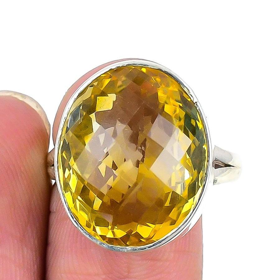Natural Citrine Solid Sterling Silver Wife Statement Friendship Day Ring Size 9