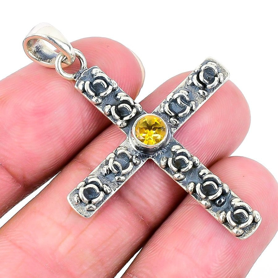 Natural Citrine Sterling Silver Ethnic Handmade Best Friend Gift New Pendant