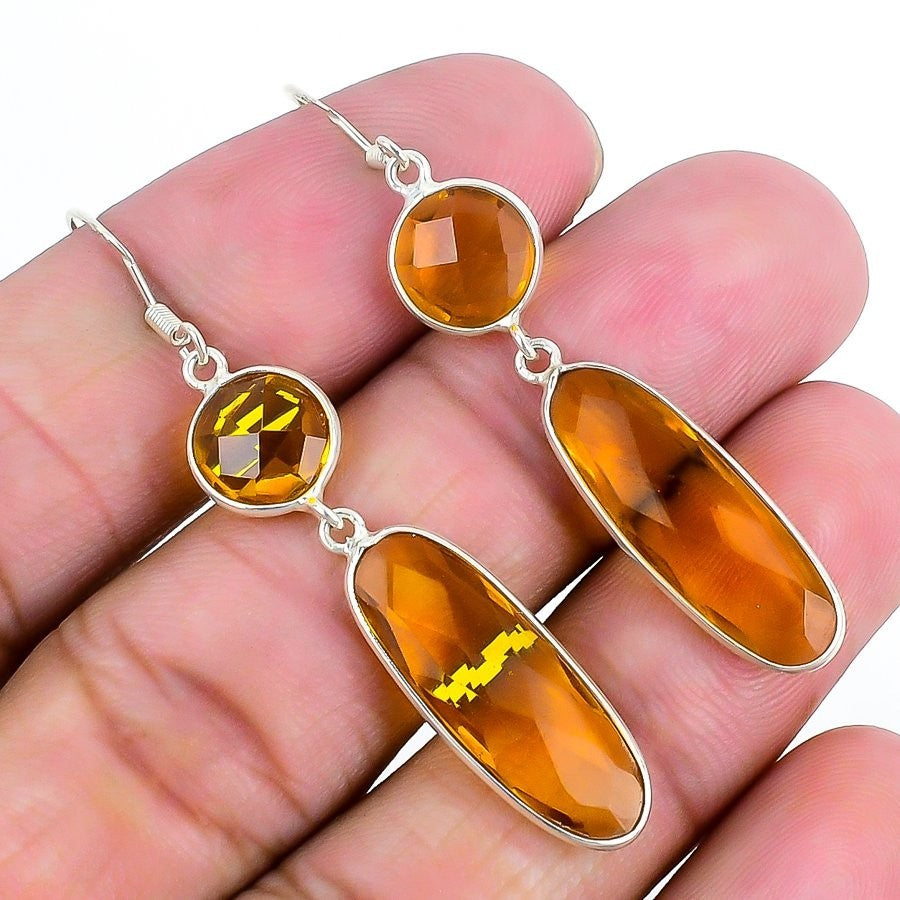 Natural Citrine Treated 925 Silver Engagement Dangle Drop Hook Birthday Earrings