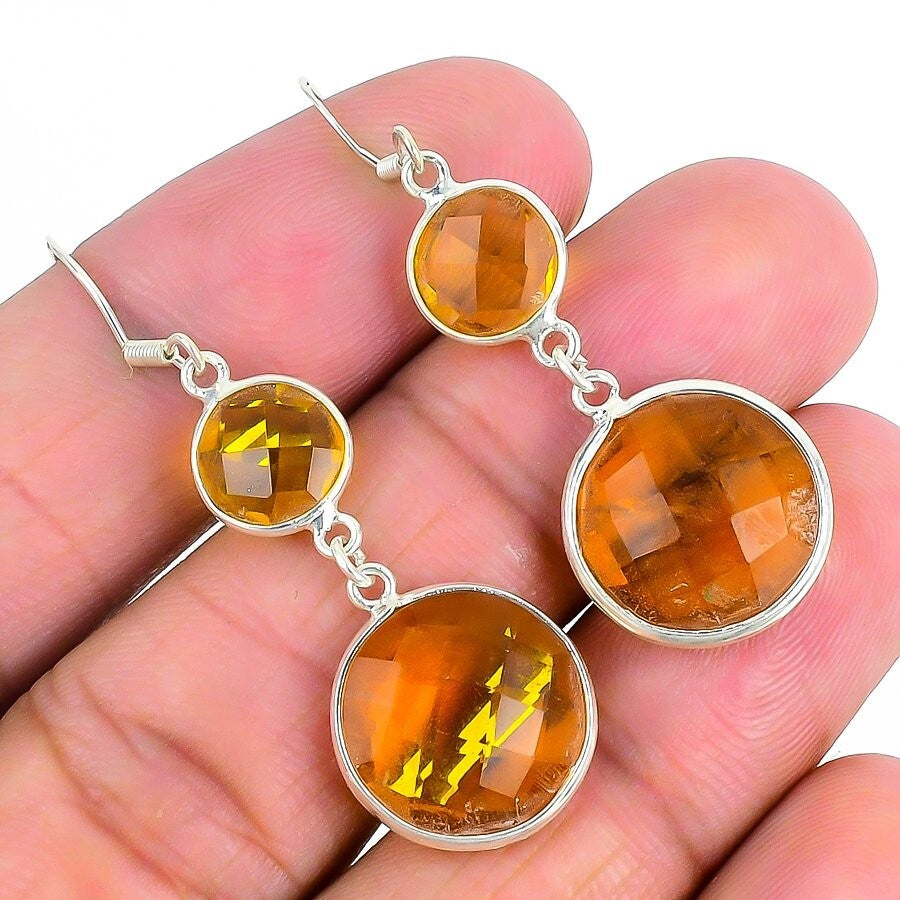 Natural Citrine Treated 925 Silver Ethnic Unique Dangle Drop Hook Boho Earrings