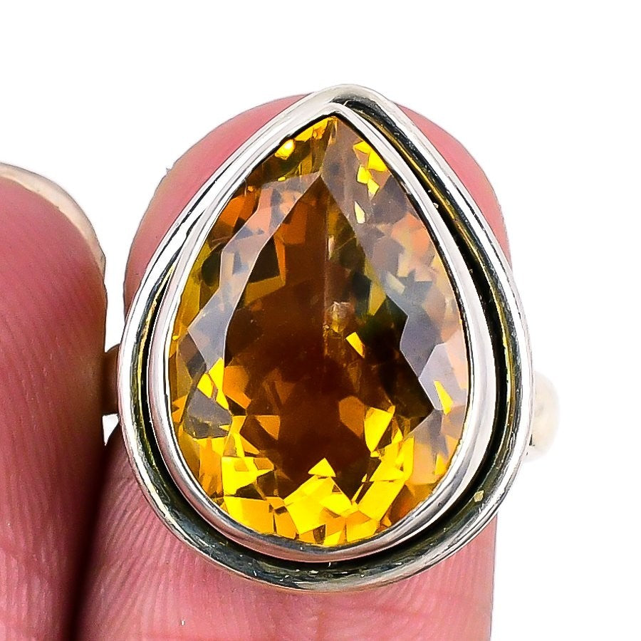 Natural Citrine Wife Statement Sisters Day Ring Size 6.5 Solid Sterling Silver