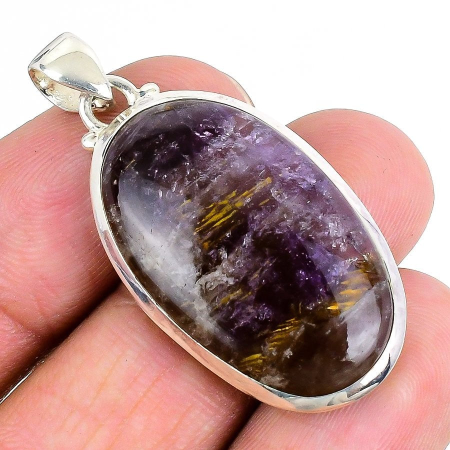 Natural Cocoxenite super seven Solid Sterling Silver Handcrafted Pendant Jewelry