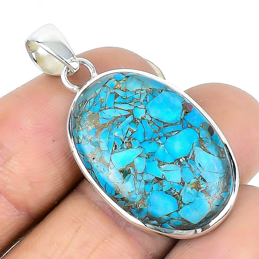 Natural Copper Blue Turquoise Anniversary Sister Pendant Jewelry Sterling Silver
