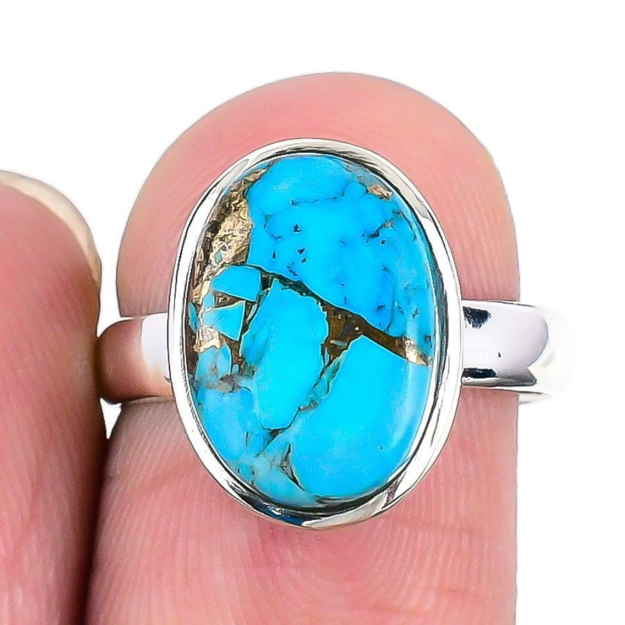 Natural Copper Blue Turquoise Wedding Statement Art Deco Ring 925 Silver US 7