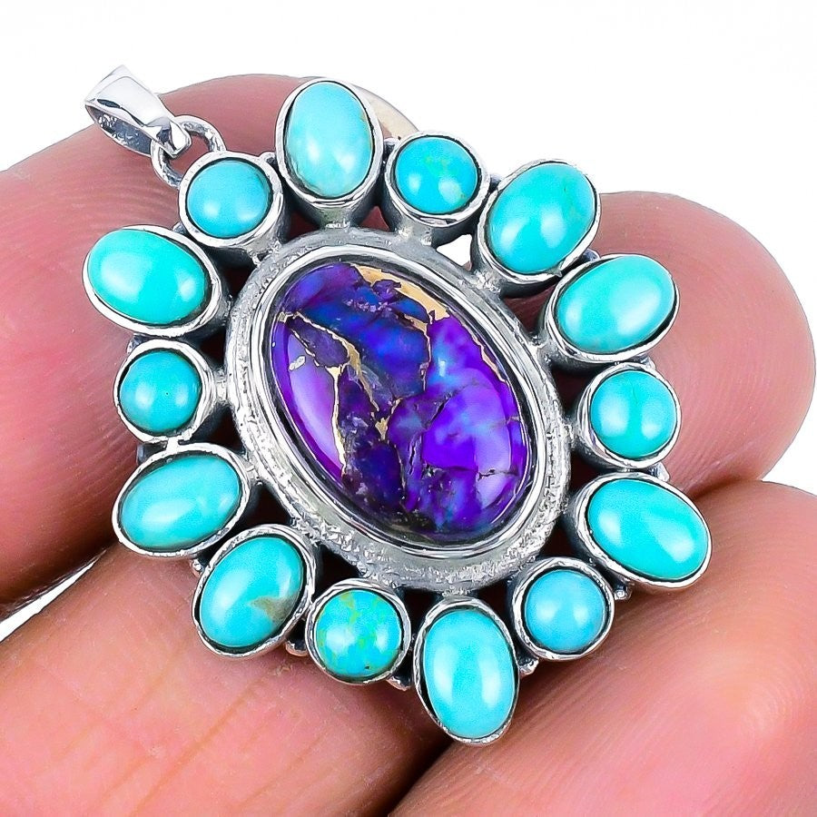 Natural Copper Purple Turquoise 925 Sterling Silver Friendship Day Boho Pendant