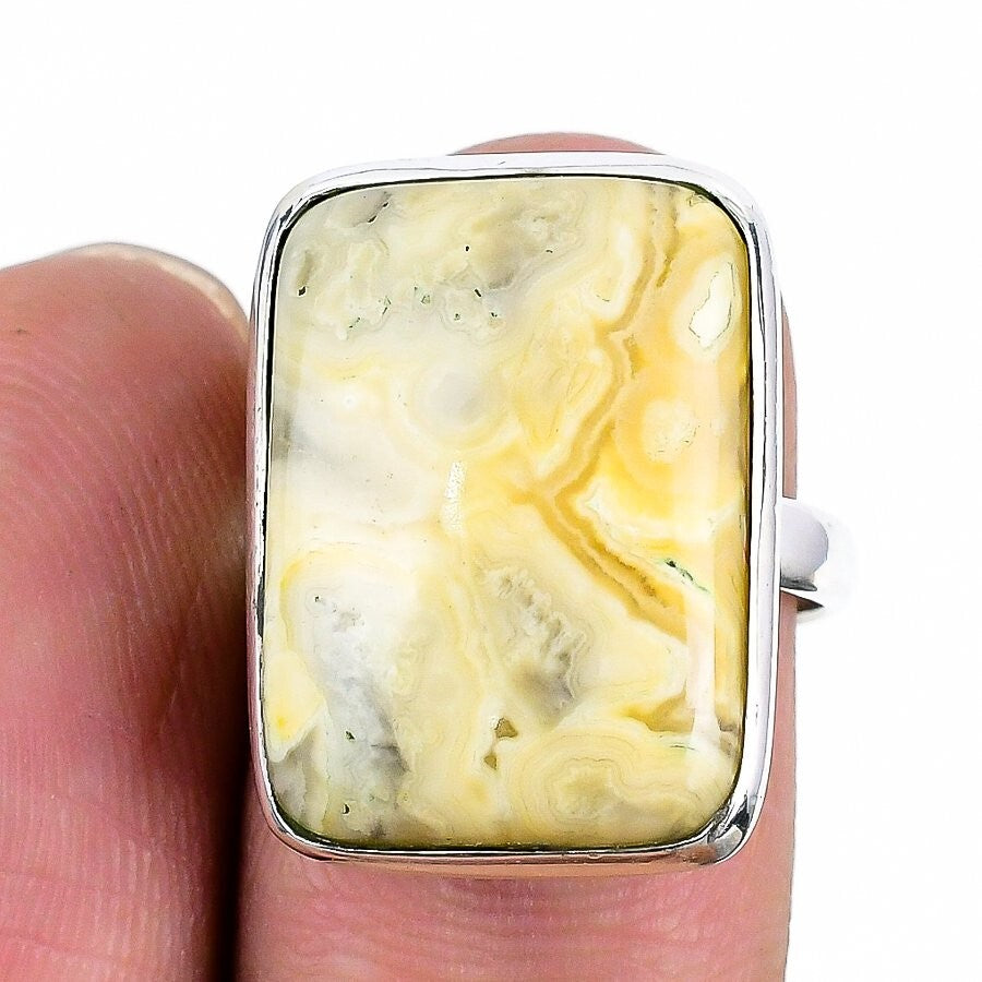 Natural Crazylace Agate Bezel Statement Ring Jewelry Size 7 925 Sterling Silver