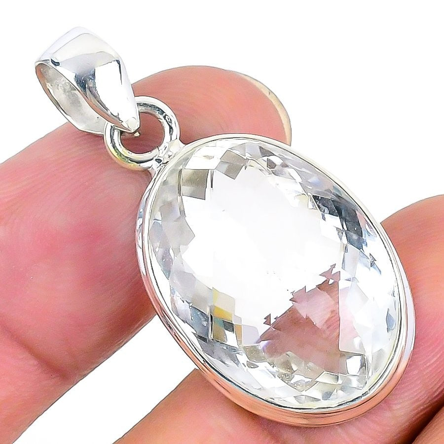 Natural Crystal Sister Crown Chakra Bezel Unique Engagement Pendant Solid Silver