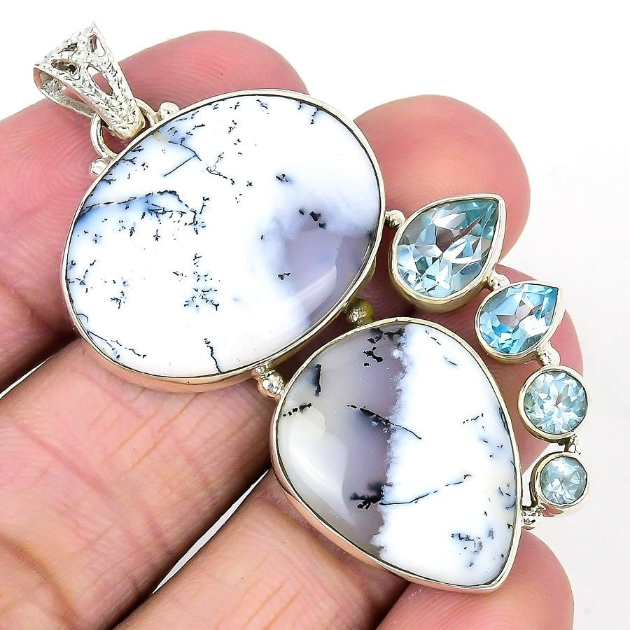 Natural Dendrite Opal 925 Solid Silver Channel Set Wife Birthday Pendant Jewelry