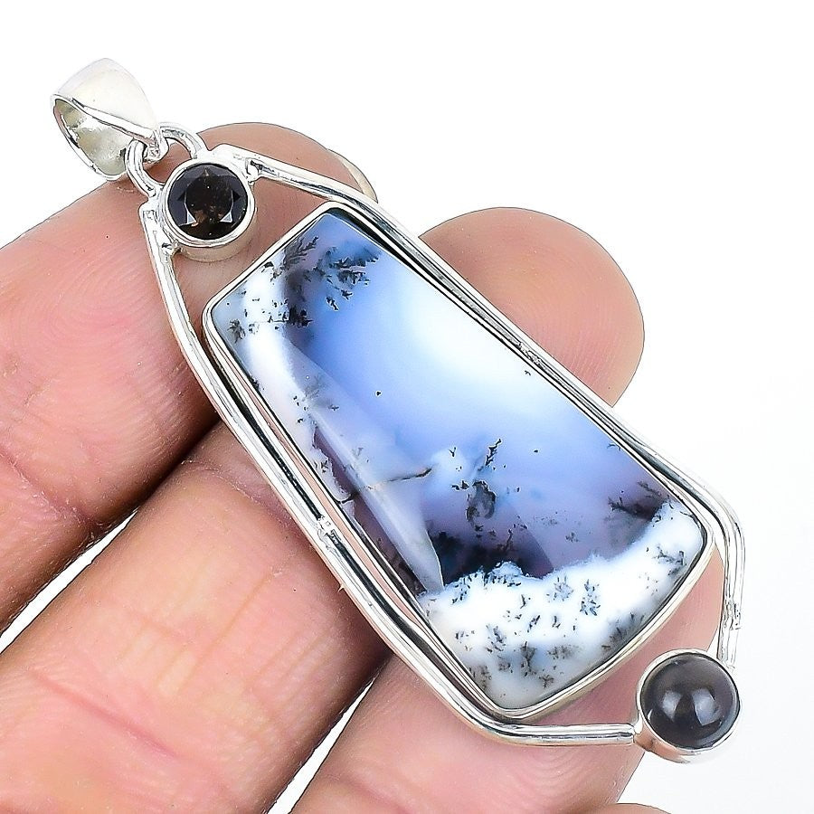 Natural Dendrite Opal Daughter Handcrafted Trendy New Pendant Jewelry 925 Silver