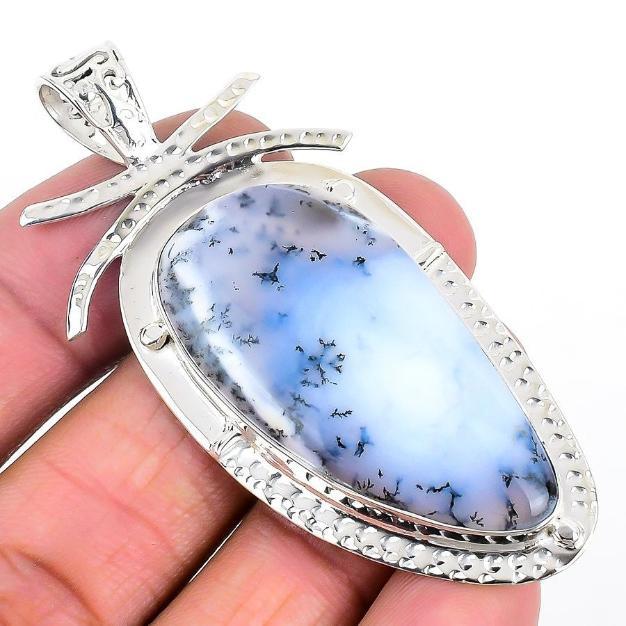 Natural Dendrite Opal Daughters Day Mother Art Deco Pendant Jewelry Solid Silver