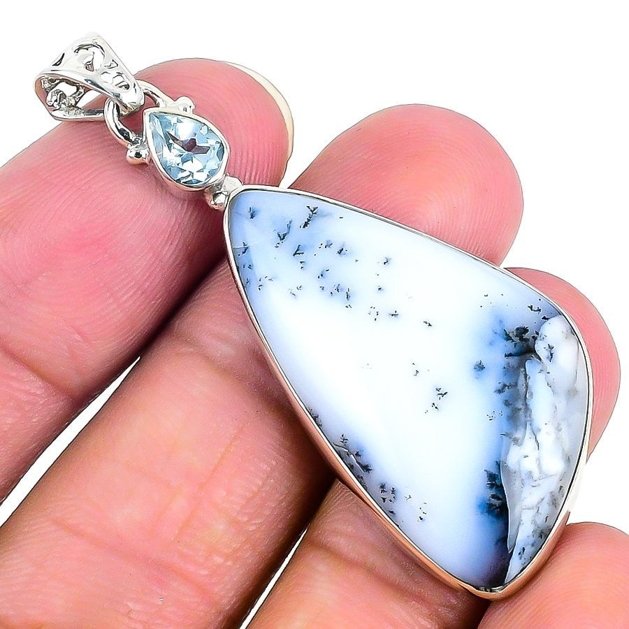 Natural Dendrite Opal Sister Bezel Handcrafted New Pendant Jewelry Solid Silver