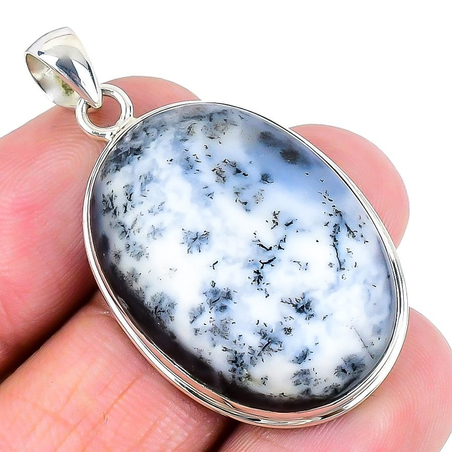 Natural Dendrite Opal Solid Silver Mother Wedding Engagement Anniversary Pendant