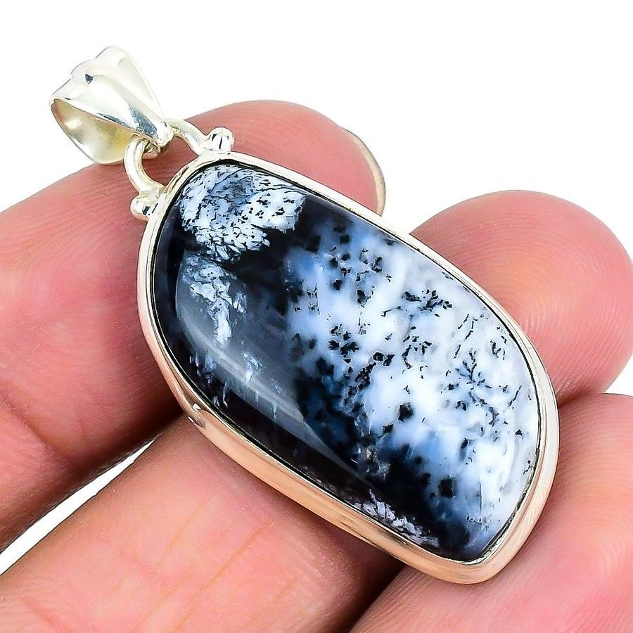 Elegant Natural Dendrite Opal Solid Sterling Silver Art in 9