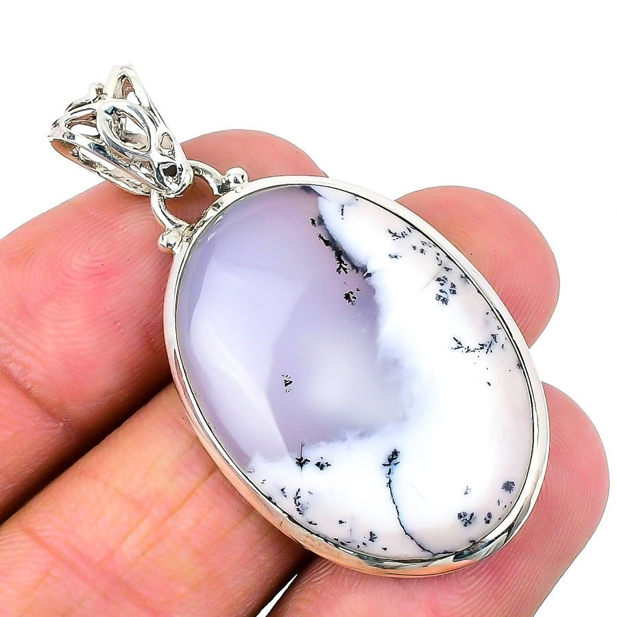 Natural Dendrite Opal Solid Sterling Silver Unique Artisan Anniversary Pendant