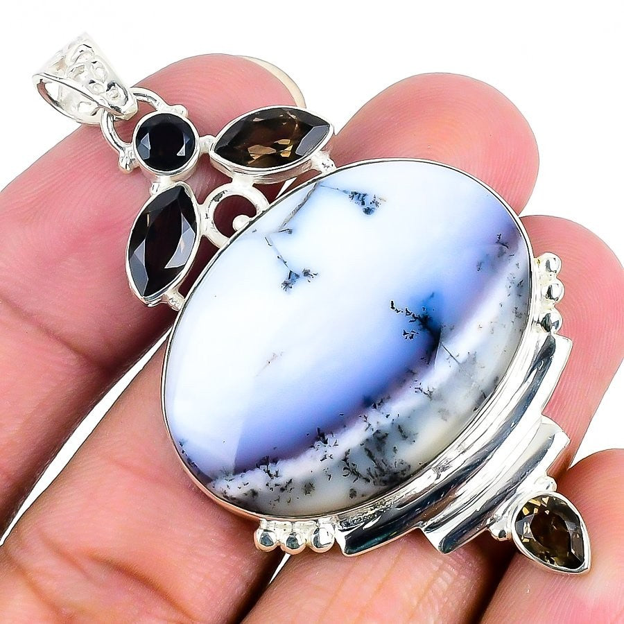 Natural Dendrite Opal Sterling Silver Bezel Wedding Birthday Engagement Pendant