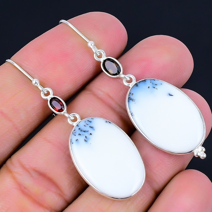 Natural Dendrite Opal Sterling Silver Unique Drop Dangle Wedding Earrings US 6.5