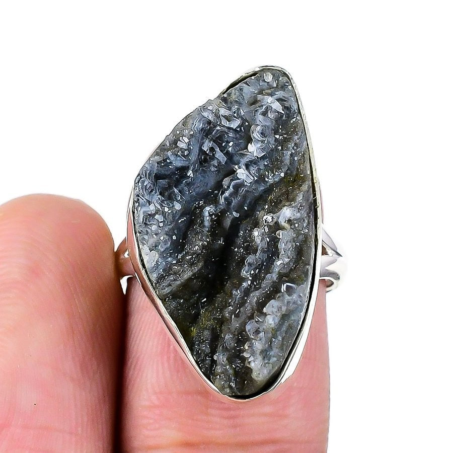 Natural Desert Rose Druzy Ethnic Statement Sister Ring Jewelry Solid Silver US 7