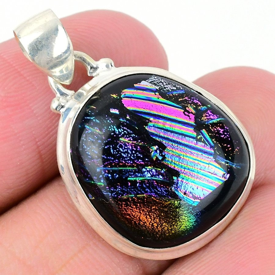 Natural Dichoric Glass Solid Sterling Silver Sister Elegant Boho Pendant Jewelry