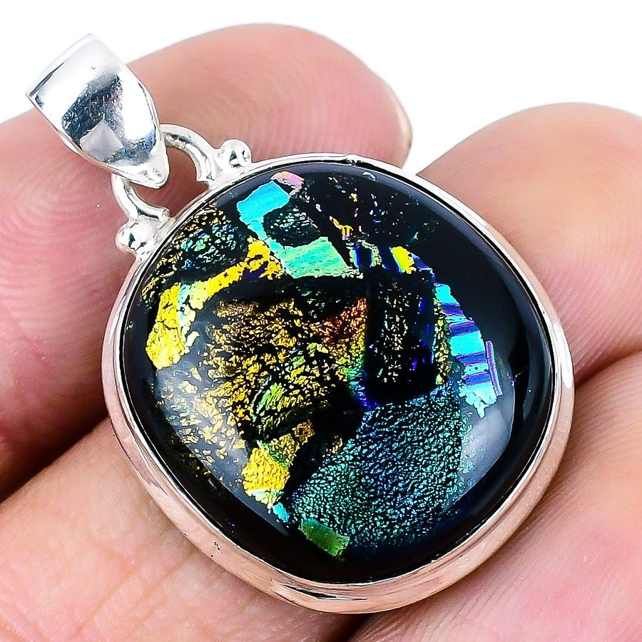 Natural Dichoric Glass Wedding Anniversary Boho Pendant Jewelry Sterling Silver