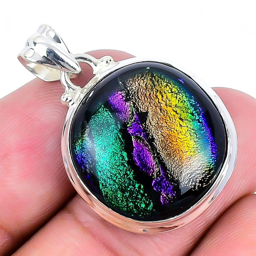 Natural Dichroic Glass Solid Silver Mother Daughter Gift Birthday Ethnic Pendant