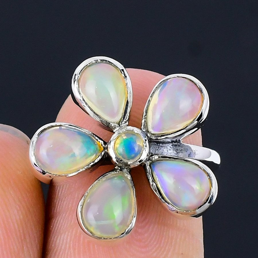 Natural Ethiopian Opal 925 Solid Silver Handmade Statement Ring Jewelry US 5.5