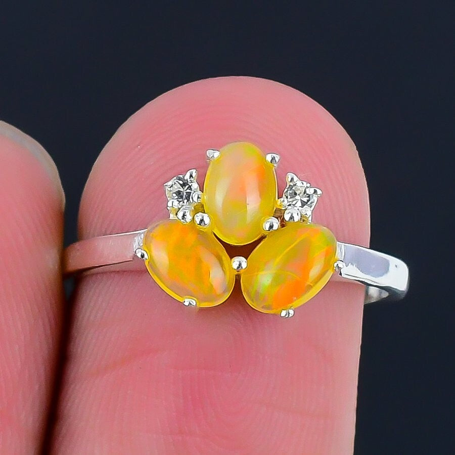 Natural Ethiopian Opal 925 Sterling Silver Statement Mother Ring Jewelry US 7.5