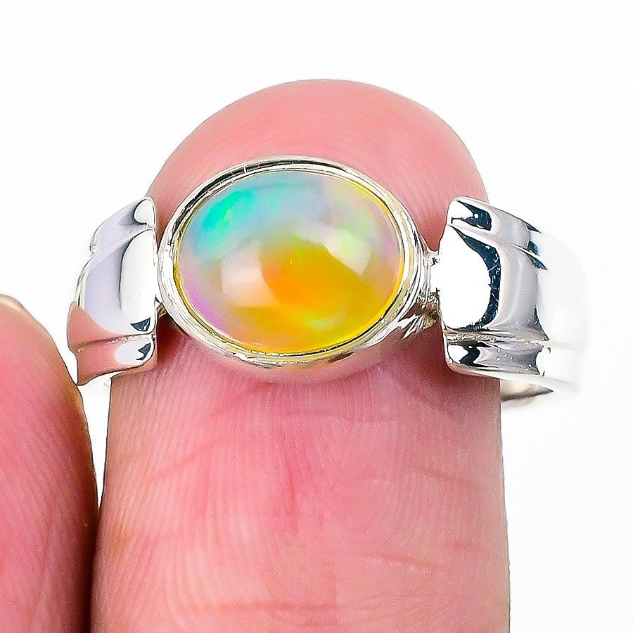 Natural Ethiopian Opal Handmade Mother Cluster Trendy Ring Size 10 Solid Silver