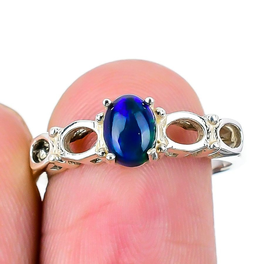 Natural Ethiopian Opal Solid Silver Boho Statement Handcrafted Ring Jewelry US 8