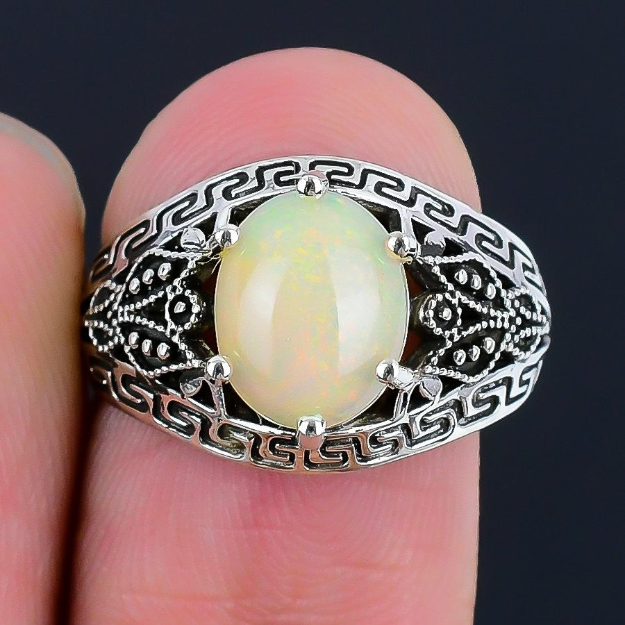 Natural Ethiopian Opal Sterling Silver Bezel Daughter Statement Unique Ring US 7
