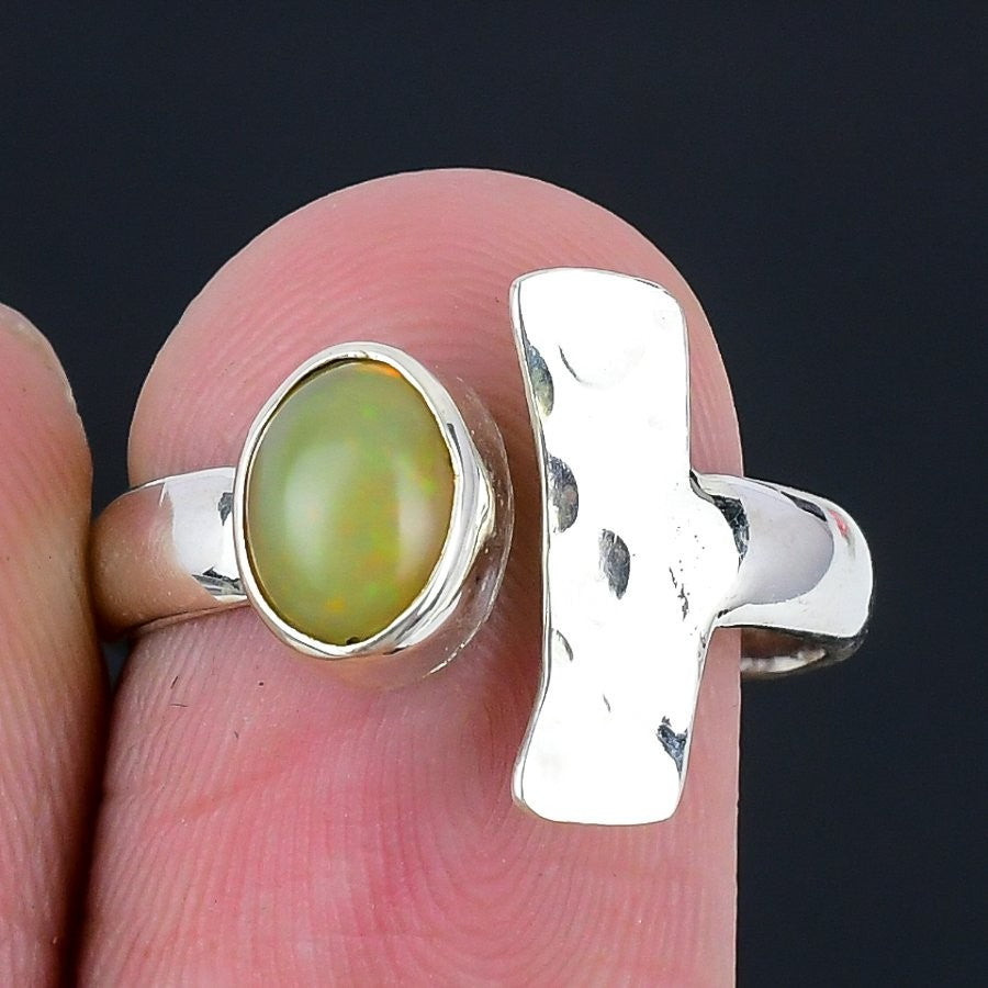 Natural Ethiopian Opal Sterling Silver Sister Statement Unique Ring Jewelry US 8