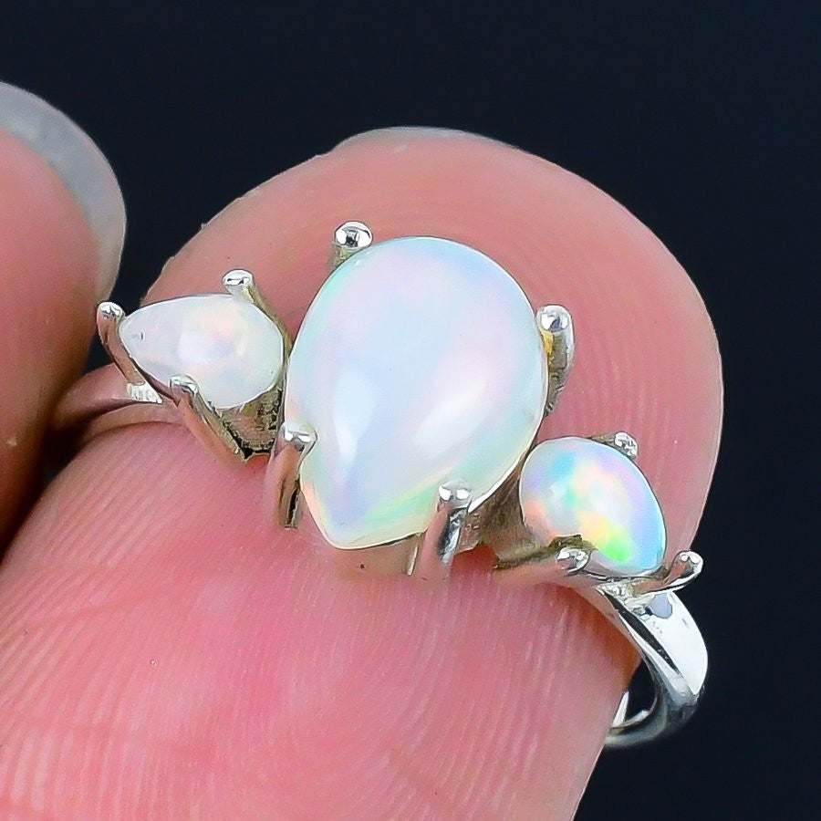 Natural Ethiopian Opal Sterling Silver Statement Handmade Wife Ring Jewelry US 7