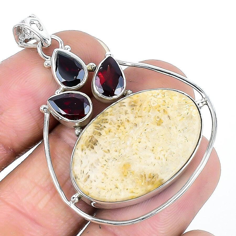 Natural Fossil Coral 925 Sterling Silver Artisan Anniversary Daughter Pendant