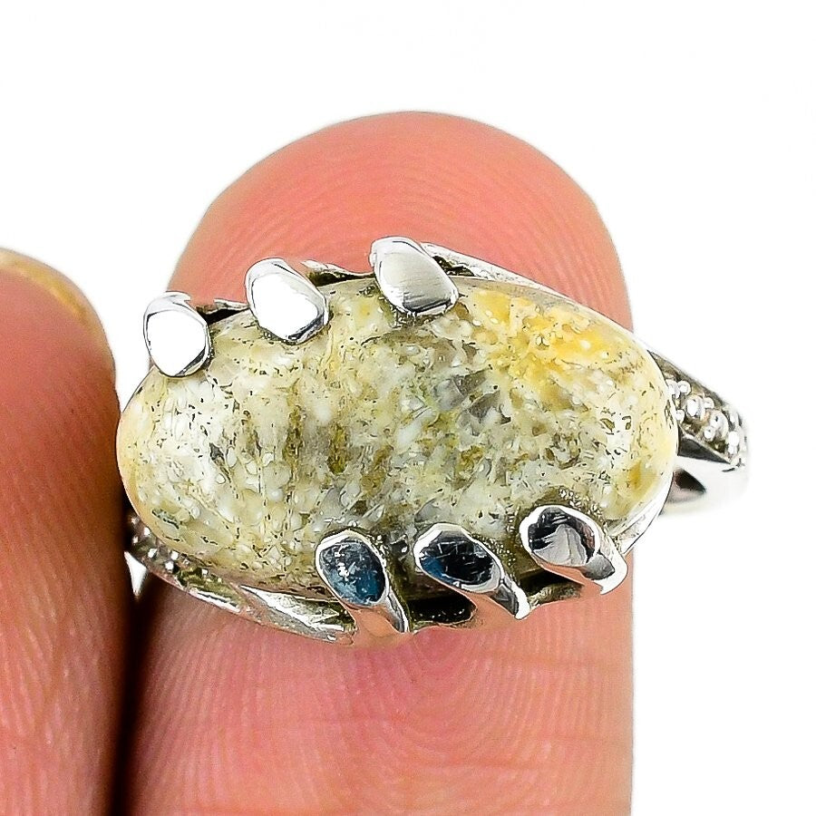 Natural Fossil Coral Bezel Wife Artisan Statement Handcrafted Ring 925 Silver