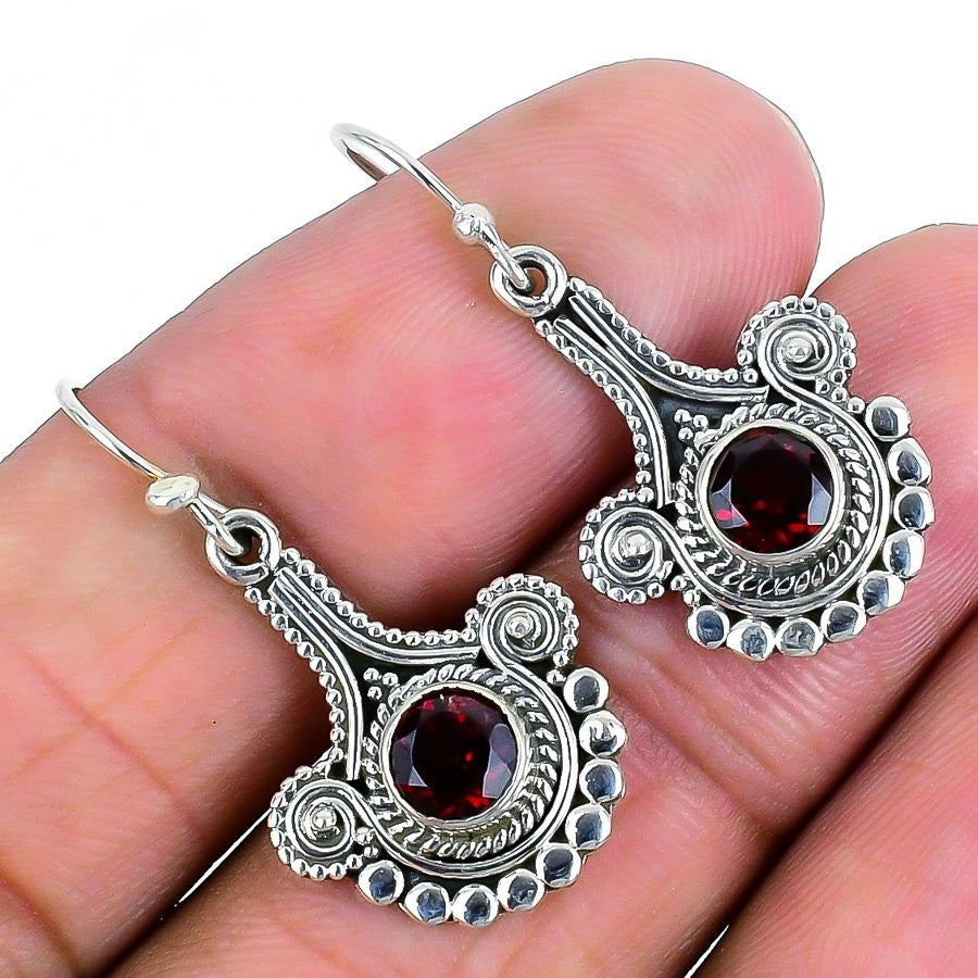 Natural Garnet Bezel Dangle Drop Daughter Gift Earrings Solid Sterling Silver