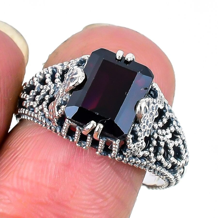 Natural Garnet Faceted Statement January Birth Ring Jewelry 925 Sterling Silver