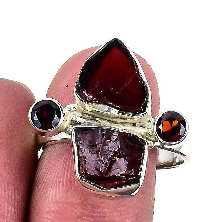 Natural Garnet Rough 925 Sterling Silver Daughter Ethnic Statement Ring Size 10